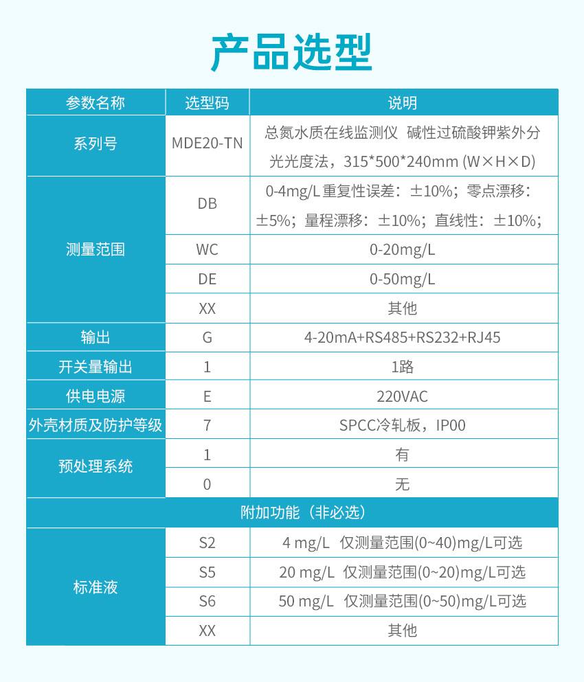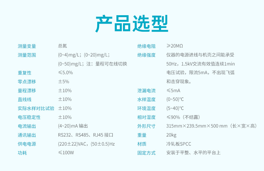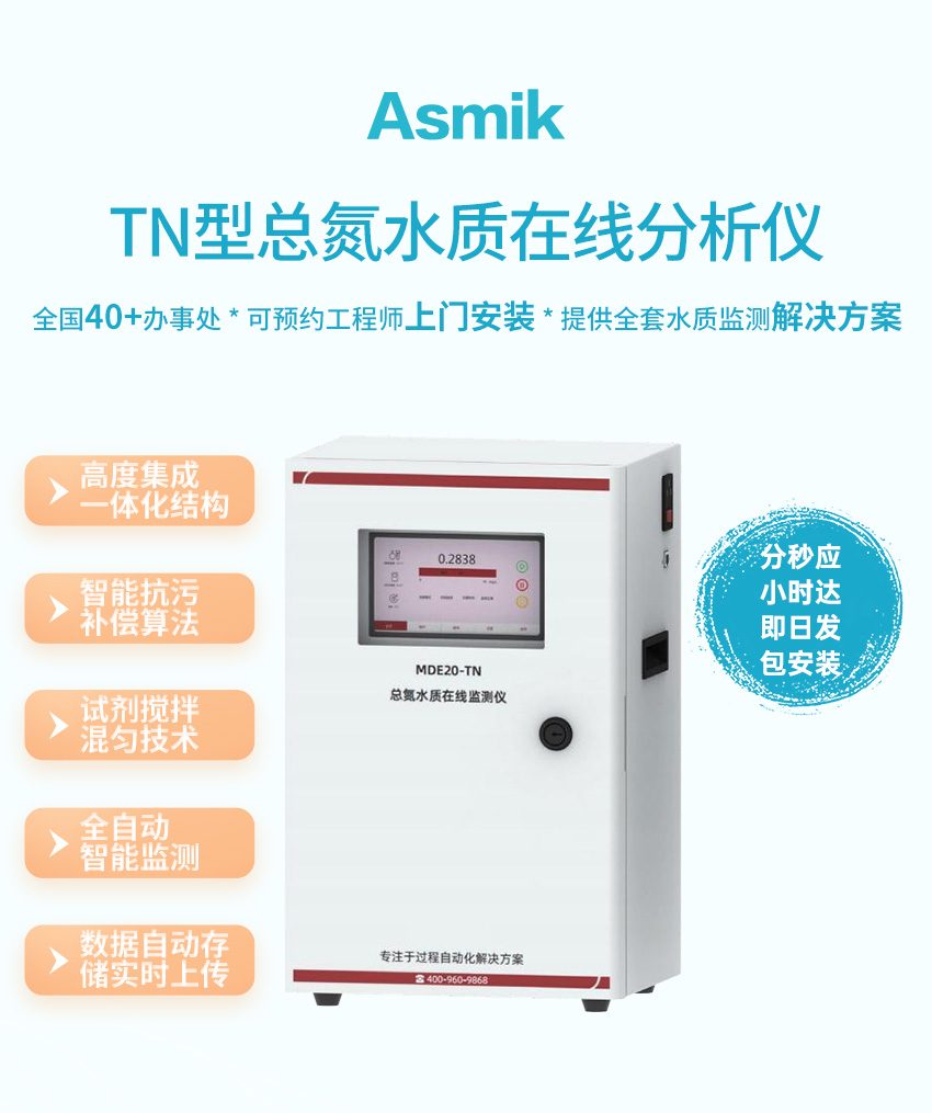 适用场合:TN 型总氮水质在线分析仪(紫外法)采用碱性过硫酸钾消解-紫外分光光度法检测,符合《总氮水质自动分析仪技术要求》(HJ/T 102)、《水质 总氮的测定 碱性过硫酸钾消解紫外分光光度法》(HJ 636)、《污染物在线自动监控(监测)系统数据传输标准》(HJ 212)、《地表水自动监测仪器通信协议技术规定》等标准和规范的要求。