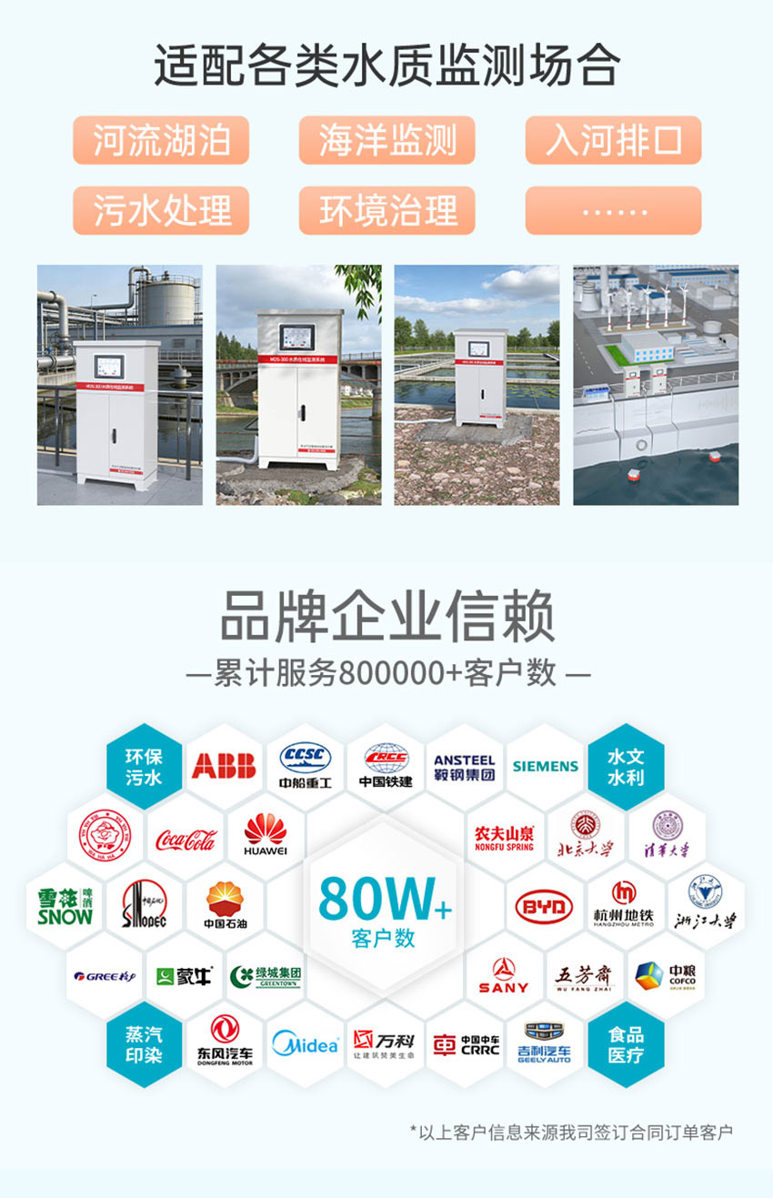 适用场合:适用于河流湖泊、污水处理厂、集中供水工程等场景的在线水质监测。