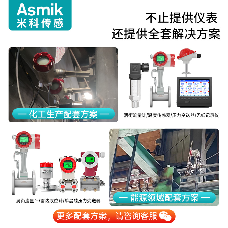 适用场合: 涡街流量计是一种应用卡门涡街原理的流量计,用于测量液体、气体和蒸汽的流量,也可测量含有微小颗粒、杂质的浑浊液体,广泛应用于石油、化工、制药、造纸、冶金、电力、环保、食品等行业。