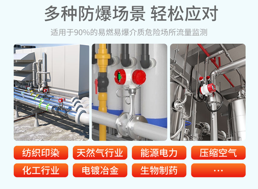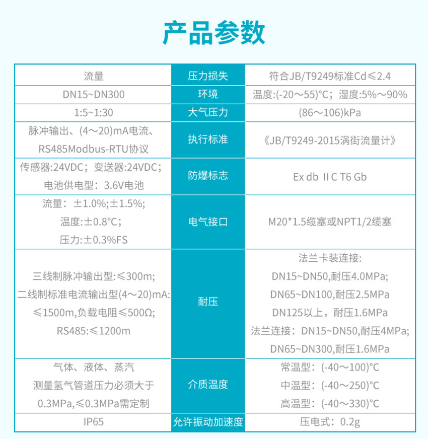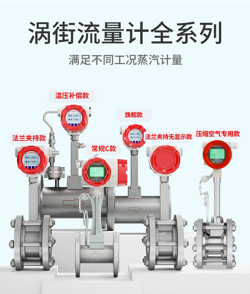 适用场合: 涡街流量计是一种应用卡门涡街原理的流量计,用于测量液体、气体和蒸汽的流量,也可测量含有微小颗粒、杂质的浑浊液体,广泛应用于石油、化工、制药、造纸、冶金、电力、环保、食品等行业。